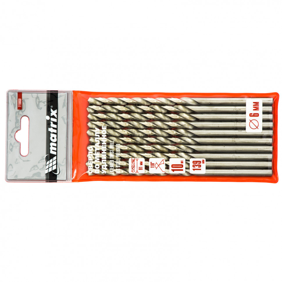 Сверло по металлу, 6 х 139 мм, полированное, удл, HSS, 10 шт, цилиндрический хвостовик Matrix