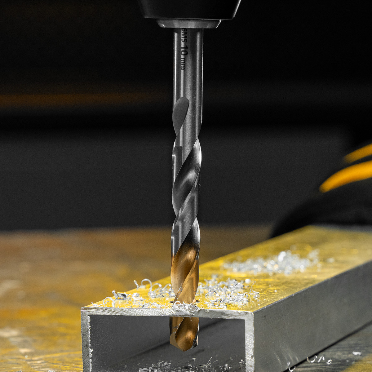- Высокая производительность — поверхность сверла покрыта нитридом титана, что снижает трение о стенки отверстия и уменьшает нагрев, а также улучшает отвод стружки.