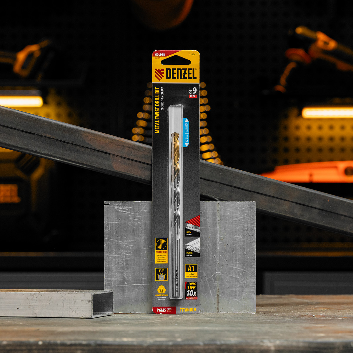 Удлиненное спиральное сверло по металлу Denzel Golden Tip 718262 из стали P6M5, размером 9 х 175 мм, предназначено для получения отверстий в легированных и цветных металлах — меди, алюминии, мягкой бронзе, титане, латуни. Оснастка позволяет эффективно справляться с этими задачами благодаря оптимальному углу заточки 135°. Класс точности A гарантирует высокое качество работ, а удлиненный профиль позволяет сверлить глубокие отверстия. Сверло используется для проведения монтажно-сборочных работ.