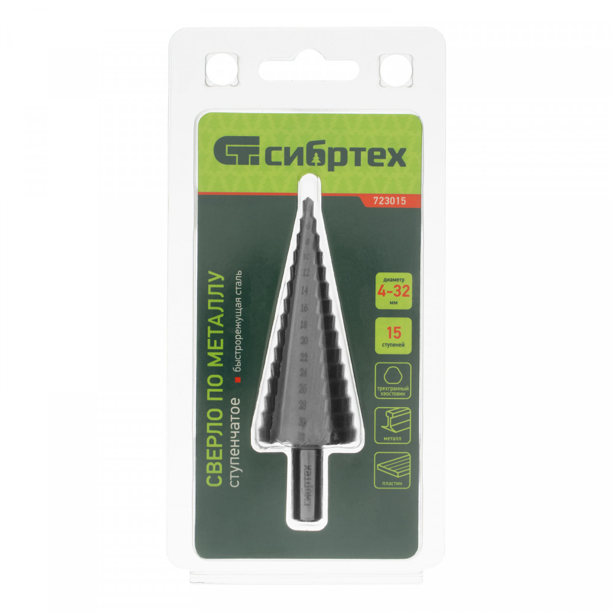 Ступенчатое сверло Сибртех 723015 предназначено для сверления отверстий диаметром от 4 до 32 мм в сталях, цветных металлах и пластике. Избавляет от необходимости иметь при себе целый набор традиционных сверл. Позволяет получать отверстия с ровными краями и уже снятой фаской под гайку или болт. Сверло пригодится дома и в мастерской.