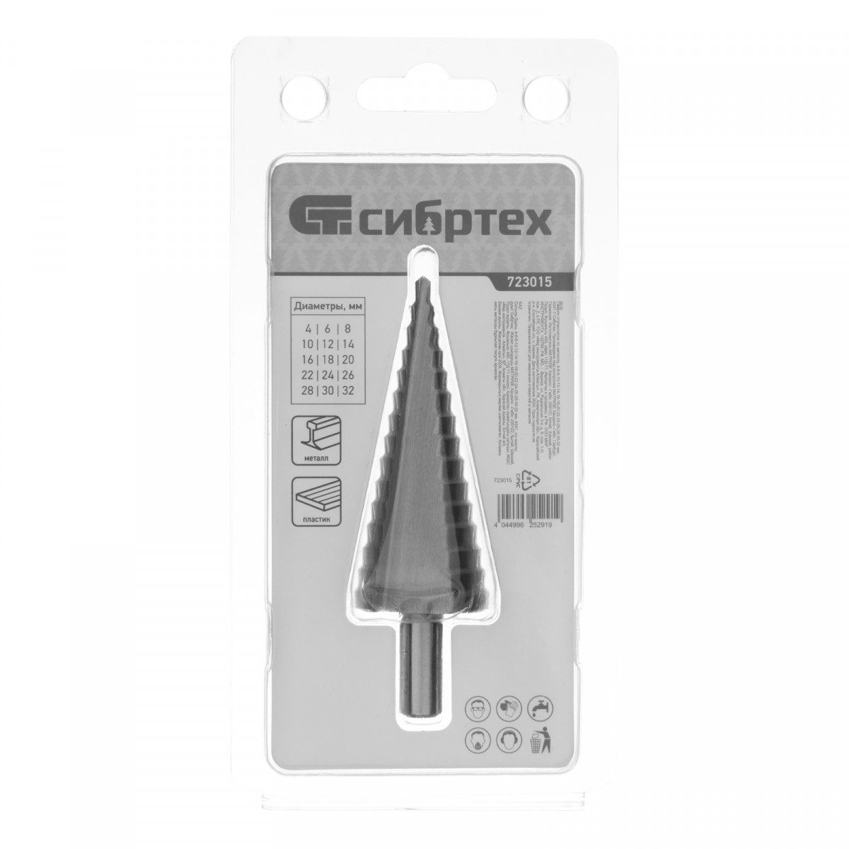 Сверло ступенчатое по металлу, 4-6-8-10-12-14-16-18-20-22-24-26-28-30-32 мм, 4241 Сибртех