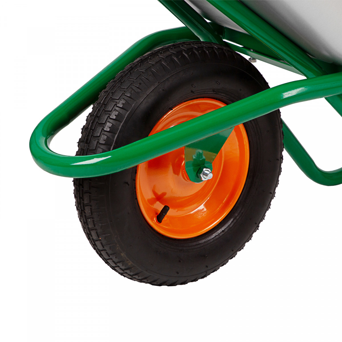 • Маневренность и хорошая проходимость — тачку с одним пневматическим колесом на 2-х шариковых подшипниках удобно перемещать и разворачивать.