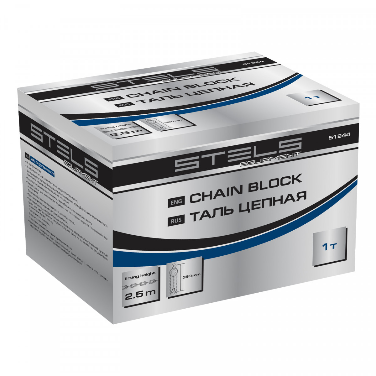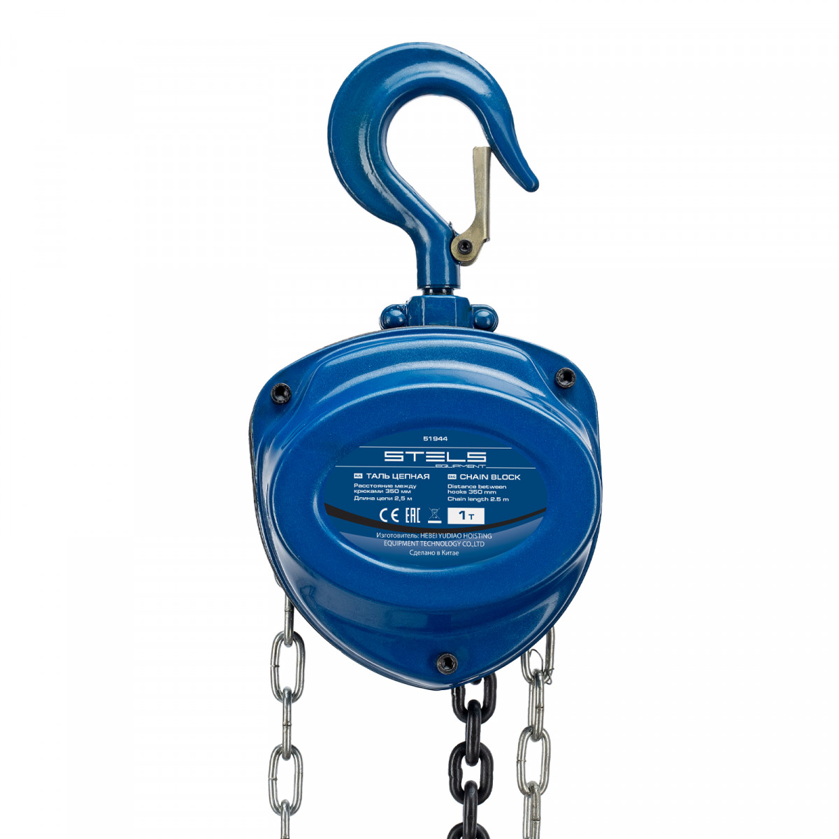 Таль цепная, 1 т, h подъема 2.5 м, расстояние между крюками 350 мм Stels