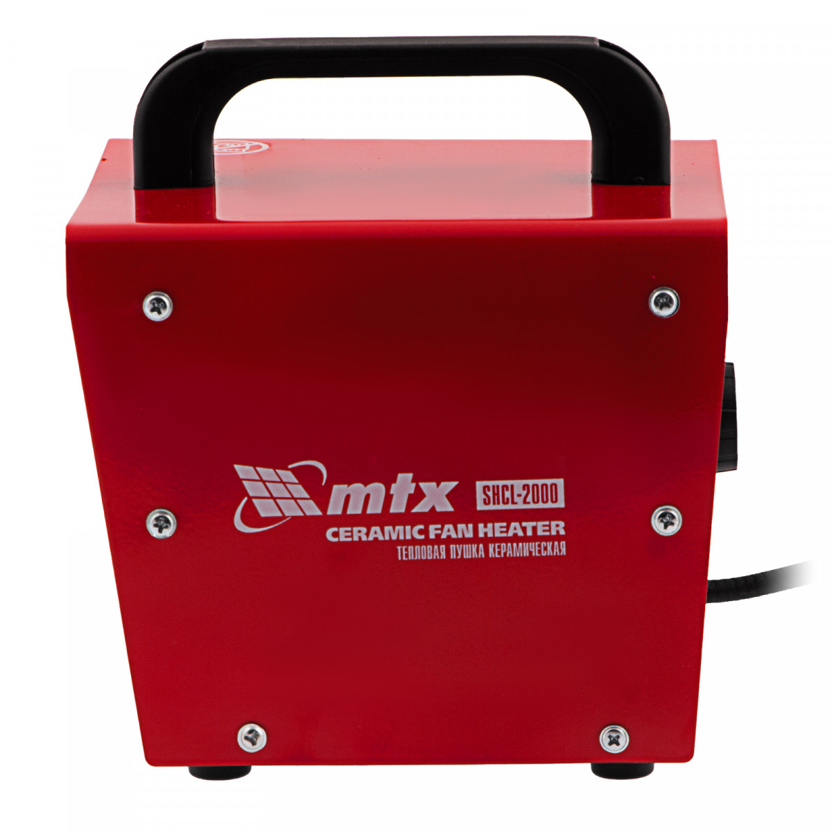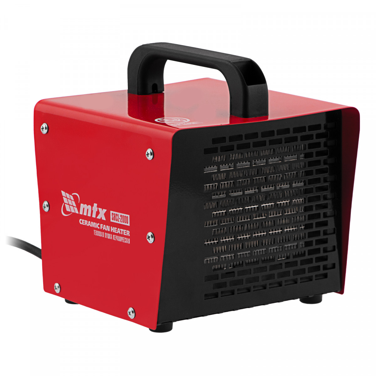 Керамическая тепловая пушка MTX SHCL-2000 96402 производительностью 125 куб. м/ч, в квадратном корпусе, работает в режиме нагрева на полной мощности 2 кВт или частичной 1 кВт, а также в режиме вентиляции. Предназначена для обогрева цехов, складов, мастерских и других нежилых помещений площадью до 20 кв. м. Также позволяет быстро просушивать различные поверхности, например, стяжки пола или оштукатуренные стены.,Отличительная черта пушки — технология PTC. Металлокерамические нагревательные элементы обладают функцией саморегуляции электрического сопротивления, что обеспечивает оптимальную температуру нагревательного элемента и пожаро-, взрывобезопасность изделия. При сохранении физической целостности нагревательный элемент не теряет своих свойств на протяжении всего срока службы.