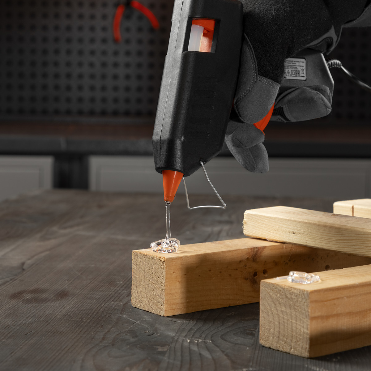 - Универсальность — прозрачные стержни оставляют незаметный клеевой шов и могут использоваться с материалами разных цветов.
