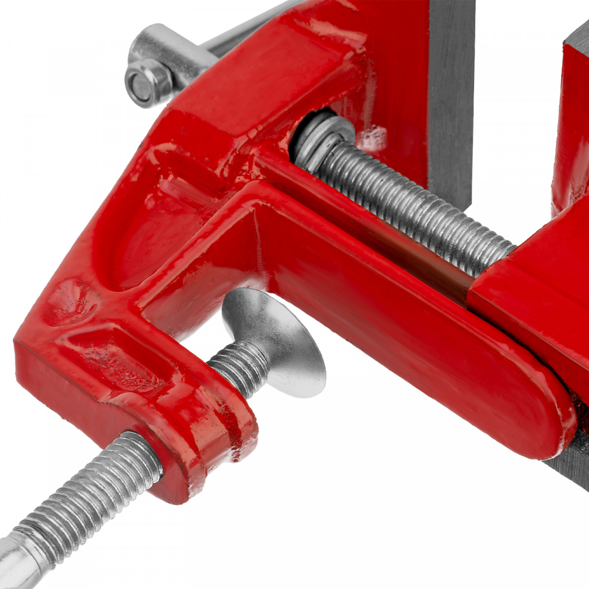 • Простое использование — винтовой зажимной механизм позволяет легко устанавливать и снимать тиски с рабочего стола.