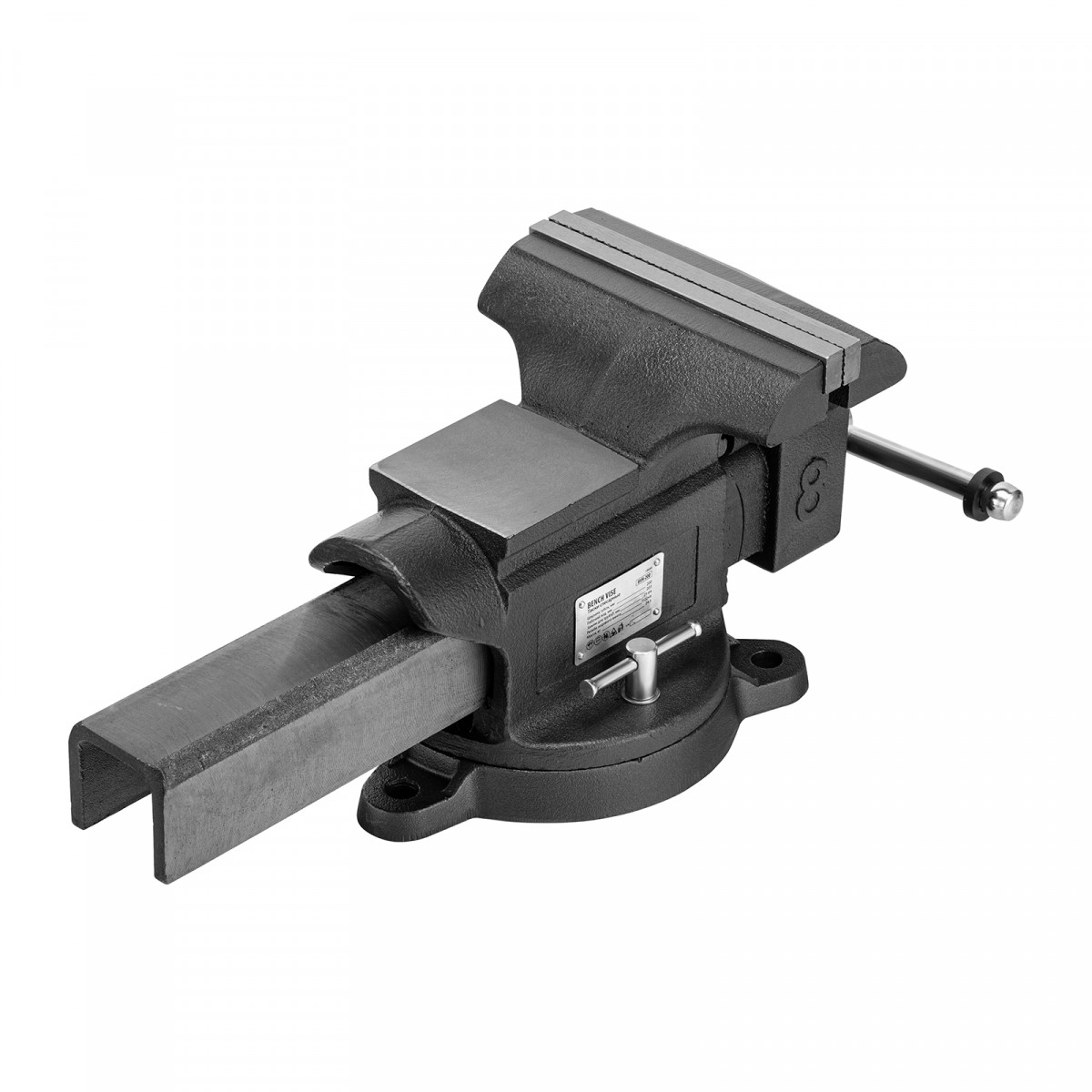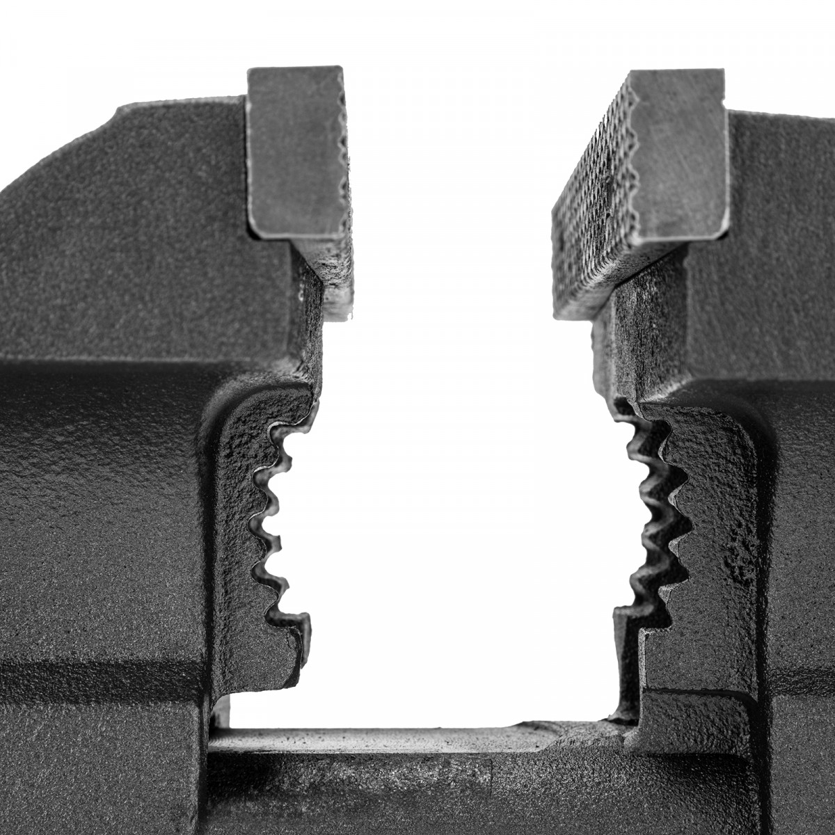 • Функциональность — тиски поворачиваются на 360°, что позволяет менять и выбирать позицию инструмента для удобной работы с заготовкой.