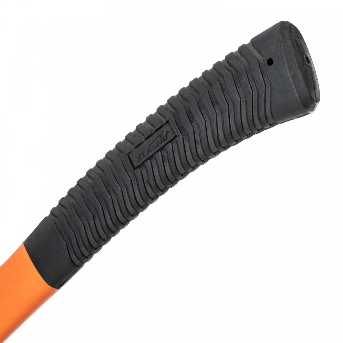 - Комфортная работа — изогнутое топорище с резиновыми вставками поглощает колебания от ударов и обеспечивает надежный хват.