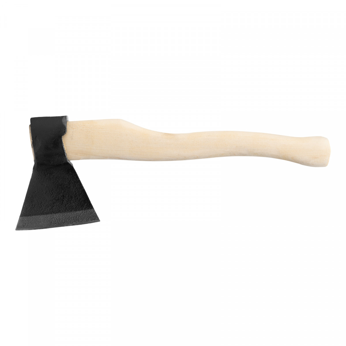 Кованый топор Б 21667 с рабочей частью весом 1240 г и деревянным топорищем длиной 500 мм, весит в сборе 1650 г и рассчитан на бытовое использование. Инструмент с небольшим прямым лезвием позволяет рубить и тесать древесину любых пород.