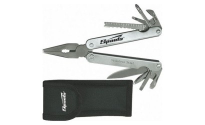 • В комплект входят: плоскогубцы, длинногубцы, кусачки, захват круглых предметов, нож для чистки рыбы, линейка, крестовая отвертка, шило, консервный нож, открывалка для бутылок, отвертки шлицевые – большая и малая, малый и большой ножи.