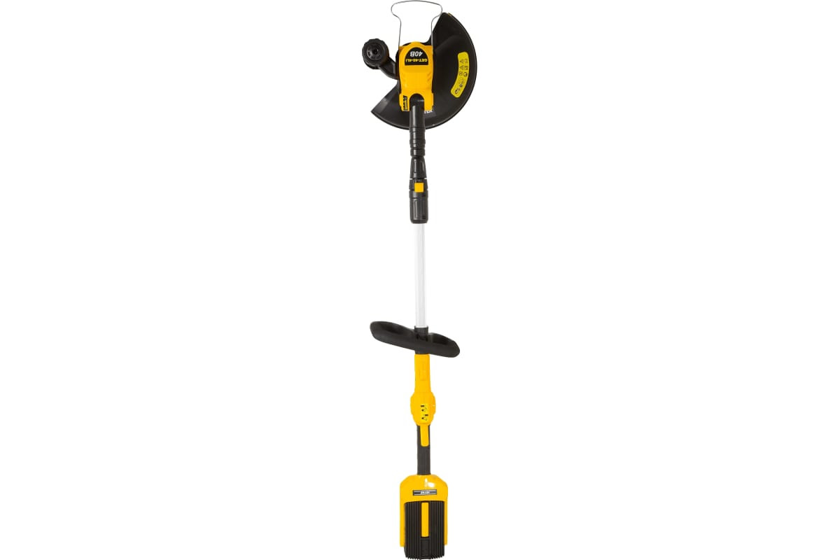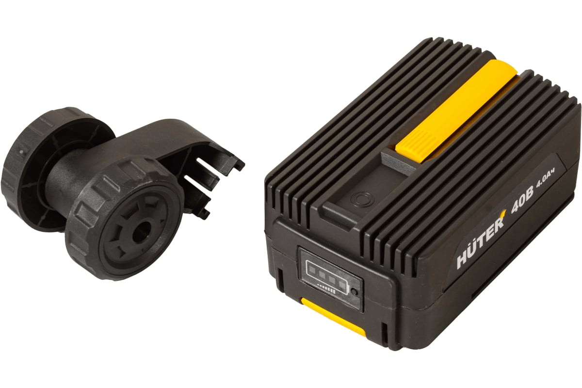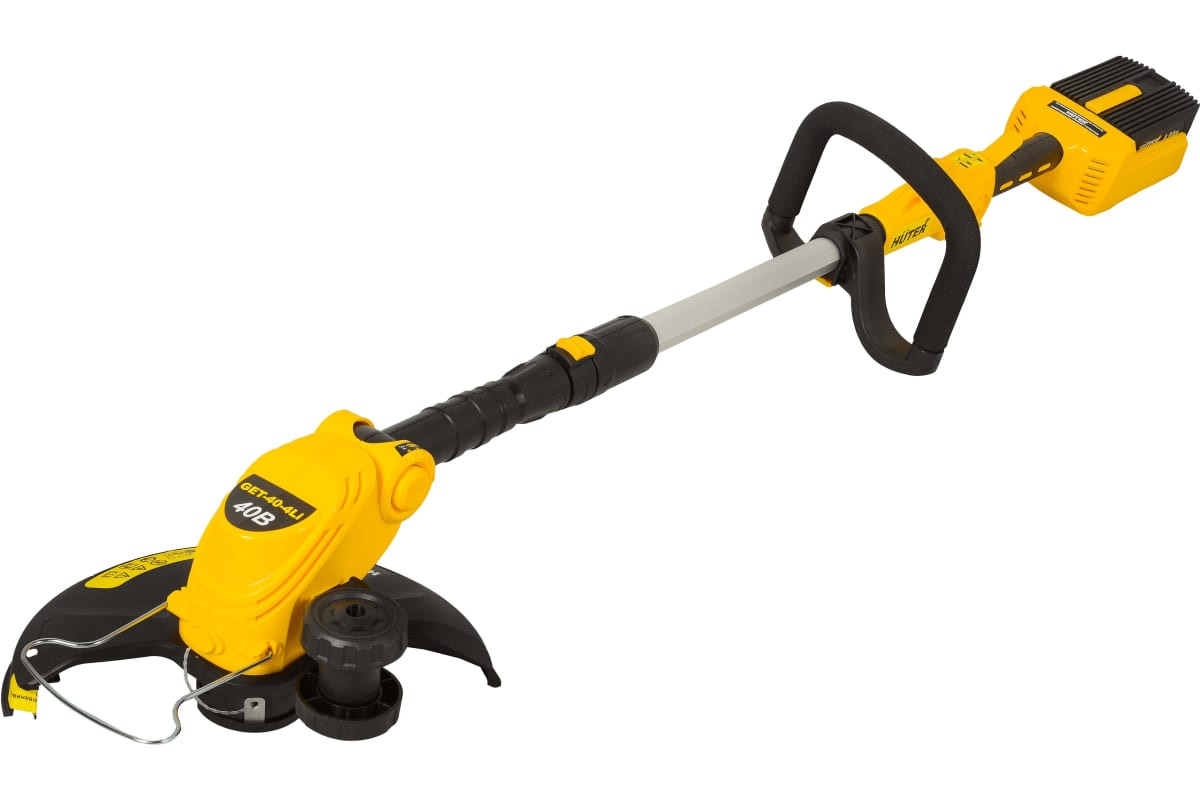 Huter GET-40-4Li– электрический аккумуляторный инструмент для скашивания травы при помощи нейлоновой лески. Небольшой вес инструмента и дополнительная ручка, расположенная на штанге, делают работу с ним удобной и простой. Литиевый аккумулятор триммера выдает напряжение 40 В, имеет емкость 4 Ач, и заставляет мотор вращаться со скоростью 8000 об.*мин. Время, необходимое для полной зарядки аккумулятора – 60 мин. Разборная конструкция штанги делает аккумуляторный триммер компактным для перевозки и хранения. Катушка заправляется леской толщиной 1,6 мм и оснащена обрезчиком, ограничивающим вылет лески. Полоса скашивания - 31 см за один проход. На рукоятке удобно расположены кнопка включения двигателя и кнопка фиксации во включенном состоянии. Достоинства Huter GET-40-4Li: низкий уровень шума при работе; быстрая зарядка аккумулятора; большая продолжительность работы на одной зарядке; неприхотливость в обслуживании; автономность работы и отсутствие необходимости в ГСМ.