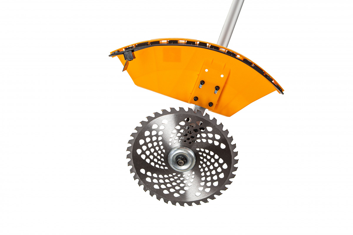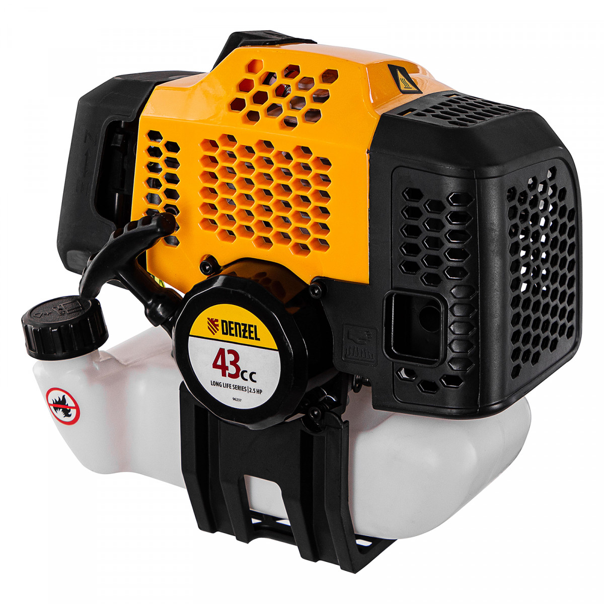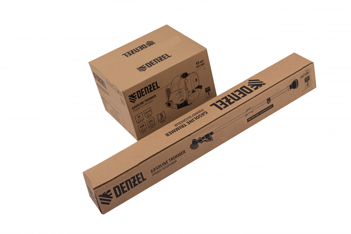 Бензиновый триммер Denzel DGT 430S 96237 с двигателем объемом 43 см3, мощностью 2,5 л. с., с разъемной штангой, состоит из 2 частей. Оптимально подходит для ухода за газоном, скашивания травы всех типов, в том числе с жесткими стеблями (полыни, крапивы, лебеды), борьбы с борщевиком, а также срезания кустарника и молодых побегов деревьев с диаметром стволов до 10 мм. Триммером удобно работать в недоступных для колесной газонокосилки мест: вокруг деревьев, около стен и заборов, у кромок дорожек. Экономичный двигатель мощностью 2,5 л.с. отличается высоким ресурсом и долговечностью. Триммер комплектуется 3 оснастками: усиленной полиамидной катушкой, трехлопастным ножом и пильным диском.