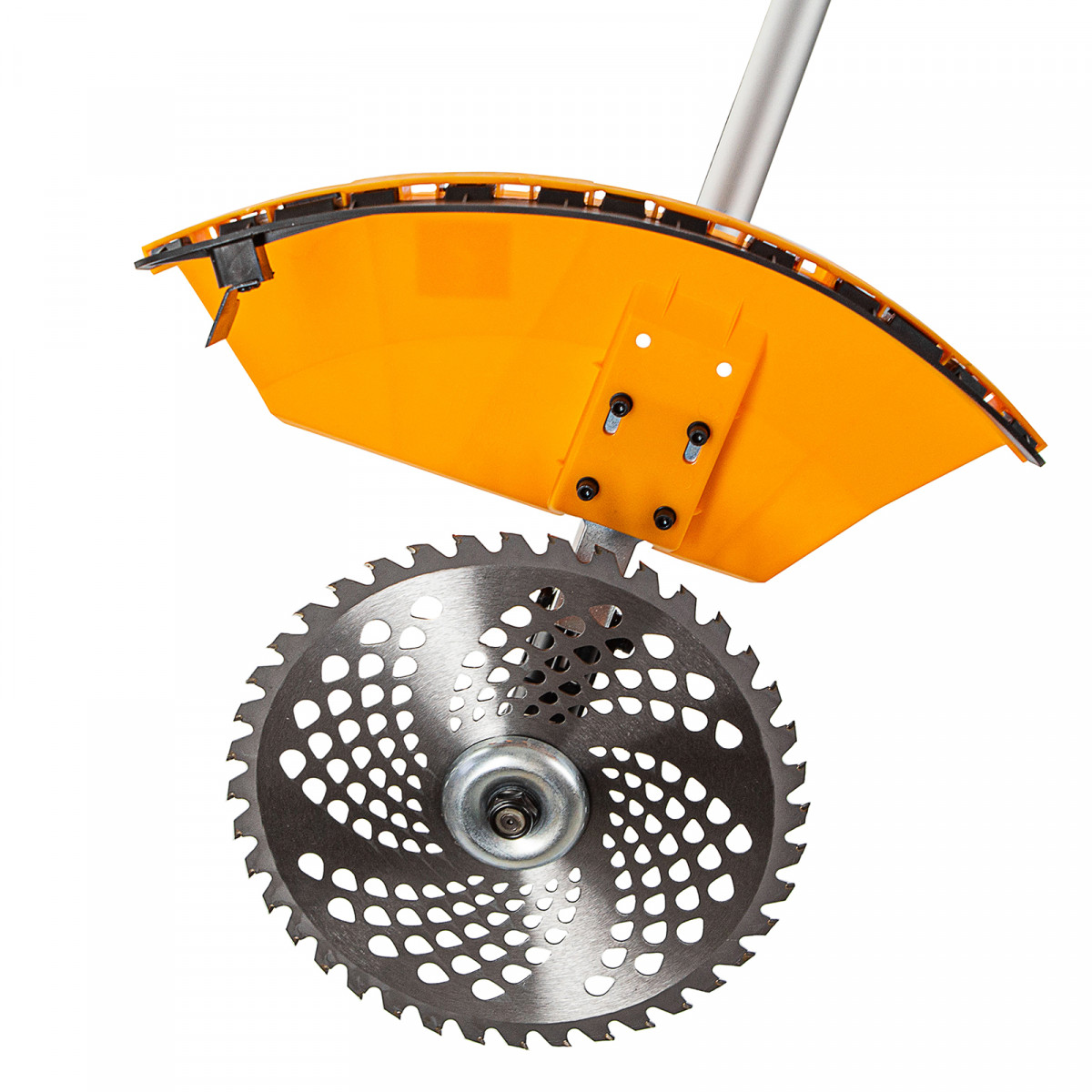 • Безопасная работа — пластиковый кожух защищает пользователя от вылетающей травы и мелких частиц.