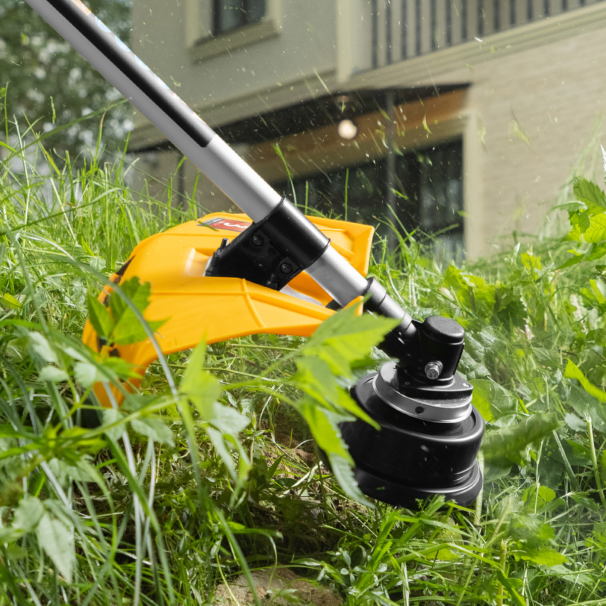 • Автоматическое подравнивание лески — ограничительный нож на кожухе отрезает лишний корд, что позволяет предотвратить перегрузку и перегрев двигателя.