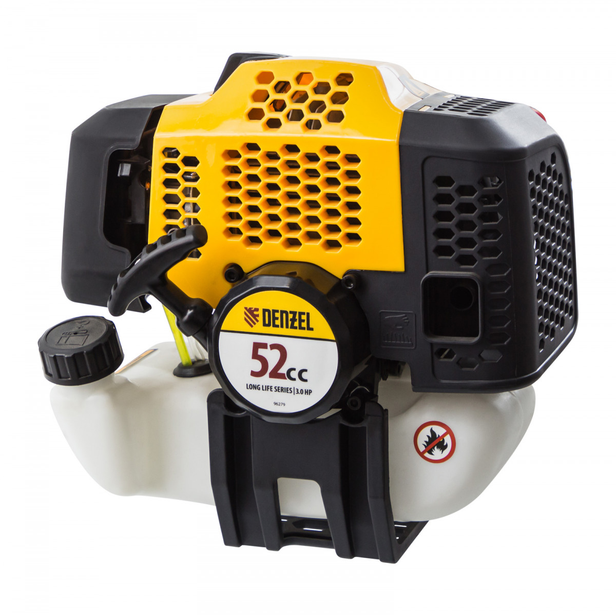Мультифункциональный бензиновый триммер Denzel DGT-52S-MAX 96279 с двигателем объемом 52 куб. см и разъемной штангой предназначен для обработки газонов, избавления от сорняков, скашивания молодой травы, а также для борьбы с зарослями. Выдерживает интенсивные нагрузки, поэтому подойдет не только владельцам дачных участков, но и сотрудникам сельскохозяйственных организаций и коммунальных служб.