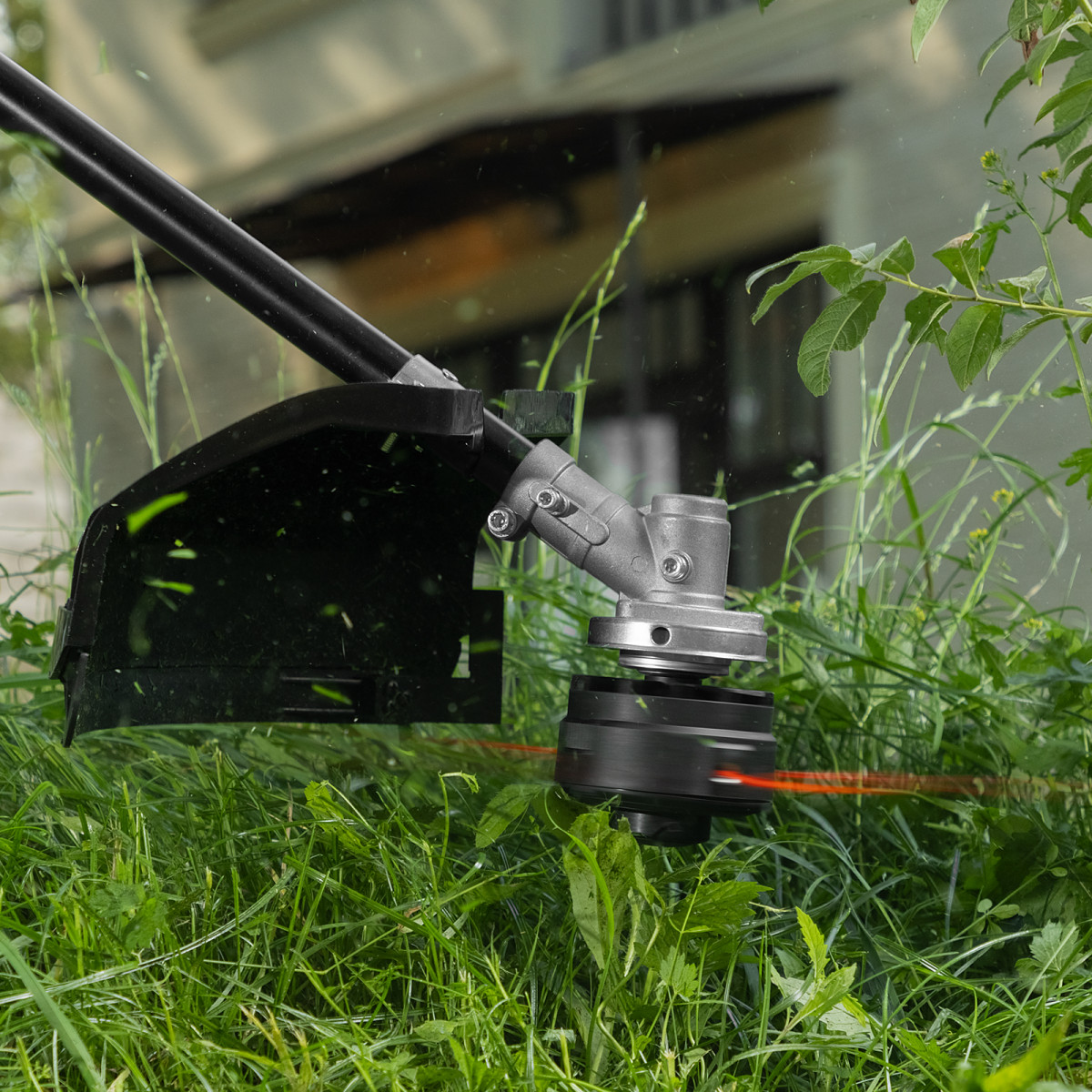 - Эргономичность — плечевой ремень снижает нагрузку на руки, а D-образная ручка обеспечивает надежный хват и облегчает управление триммером.