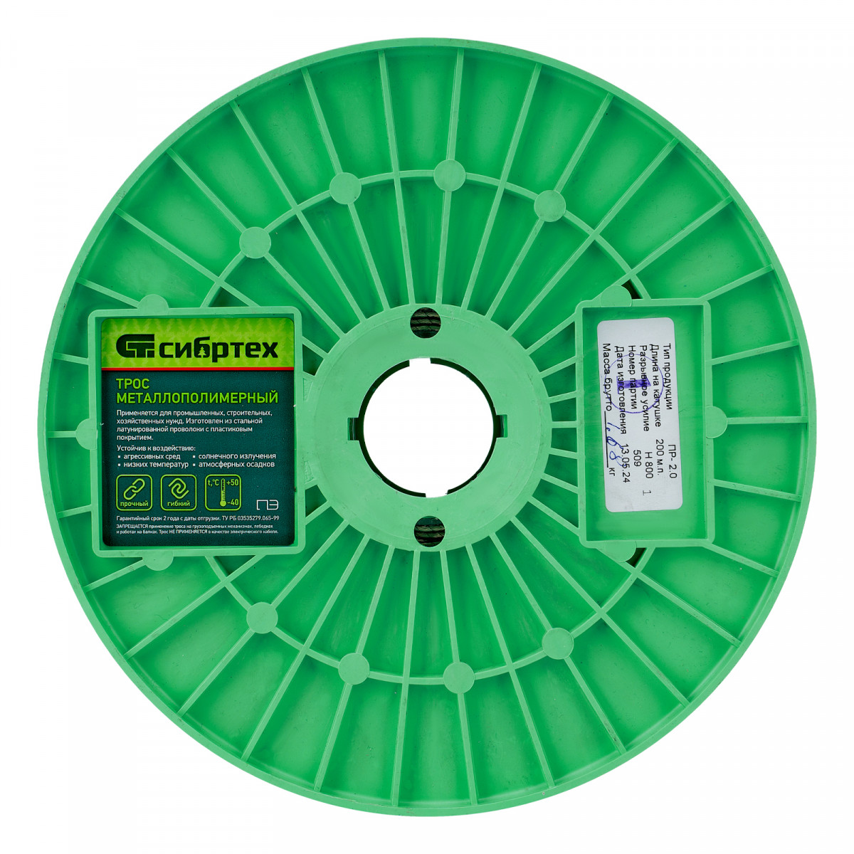 Металлополимерный прозрачный трос ПР-2.0 Сибртех 47624 толщиной 2,0 мм, 200 м. п. на катушке, используется для монтажа рекламных баннеров, установки ограждений, палаток, теплиц, погружения скважинных насосов и датчиков. Применяется в качестве садового троса-шнура для подвязки растений, а также может служить для развешивания белья. Жила шнура изготовлена из стальной проволоки, поэтому он выдерживает значительные нагрузки.