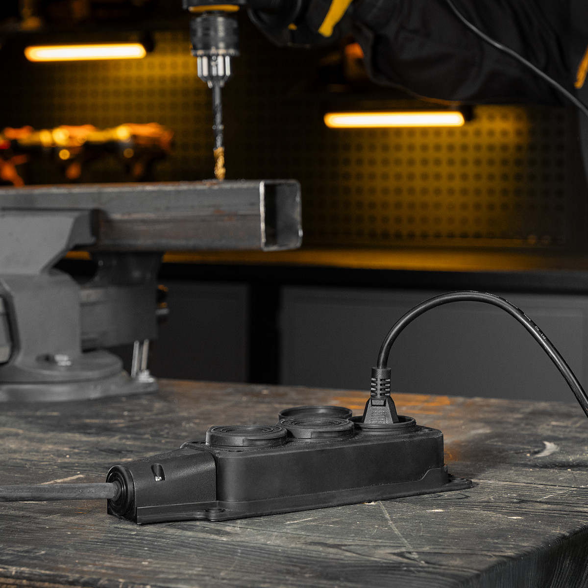 • Высокая степень защиты — удлинитель можно использовать даже во время выпадения осадков.