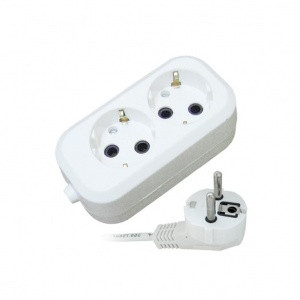 Бытовой удлинитель, 2гн., 2м, с заземлением, провод ПВС 3*0,75мм2, 220В, 10А, 2200Вт, белый, блистер