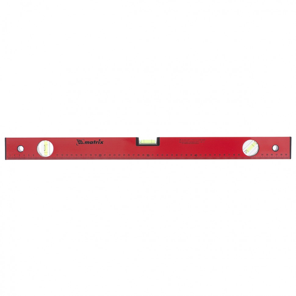 Уровень алюминиевый, 600 мм, 3 глазка, красный, линейка Matrix