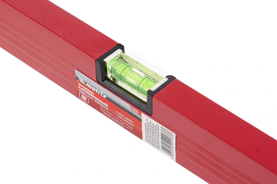 Алюминиевый уровень Matrix 33223 длиной 600 мм, красного цвета, с 3 глазками и линейкой, пригодится при проведении строительных, ремонтных и монтажных работ. С ним повышается точность работы, что позволяет добиться качественного результата. Три колбы рассчитаны на проверку горизонтали, вертикали и угла 45 градусов, погрешность равна 1 мм/м (0,057 градуса).,Для определения отклонения вертикали 90 градусов необходимо использовать пузырьковую ампулу только в верхнем положении уровня. Только базовая поверхность является рабочей (противоположная ампуле 180 градусов).