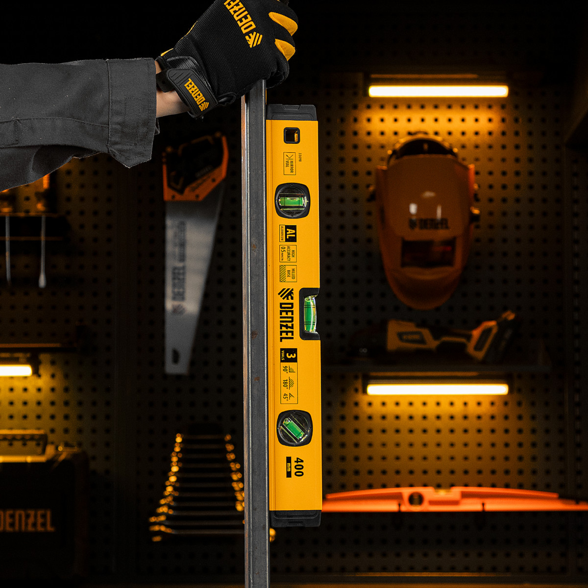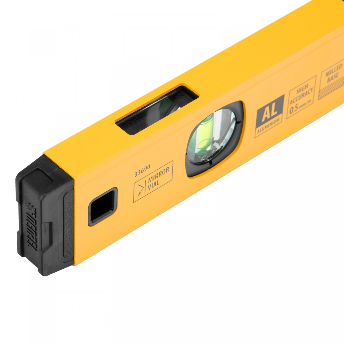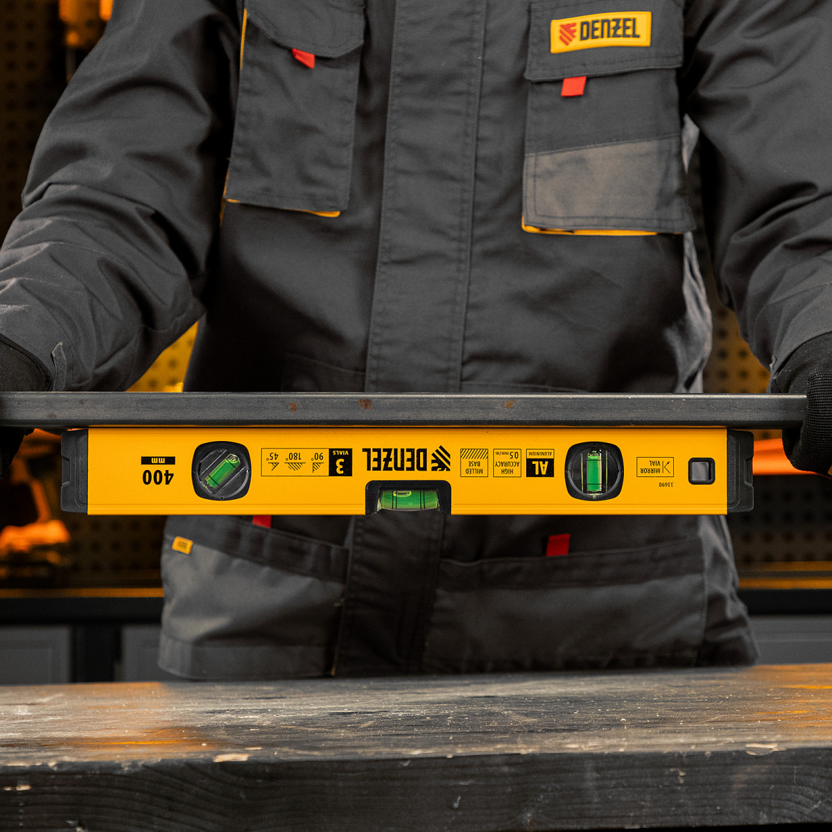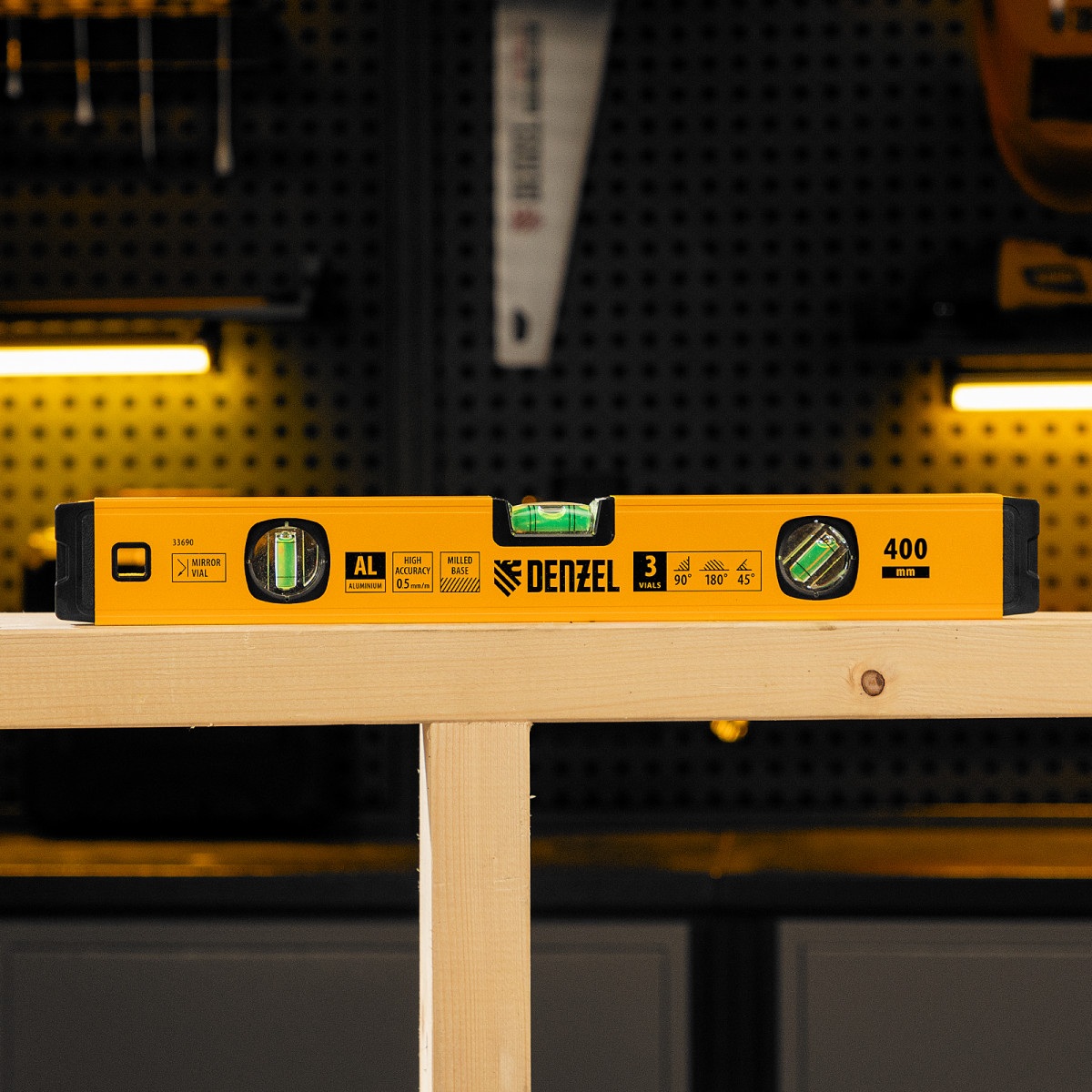 Уровень алюминиевый, магнит., фрезерованный, 3 глазка (1 зеркал.) 0,5 мм/м, 400 мм Denzel