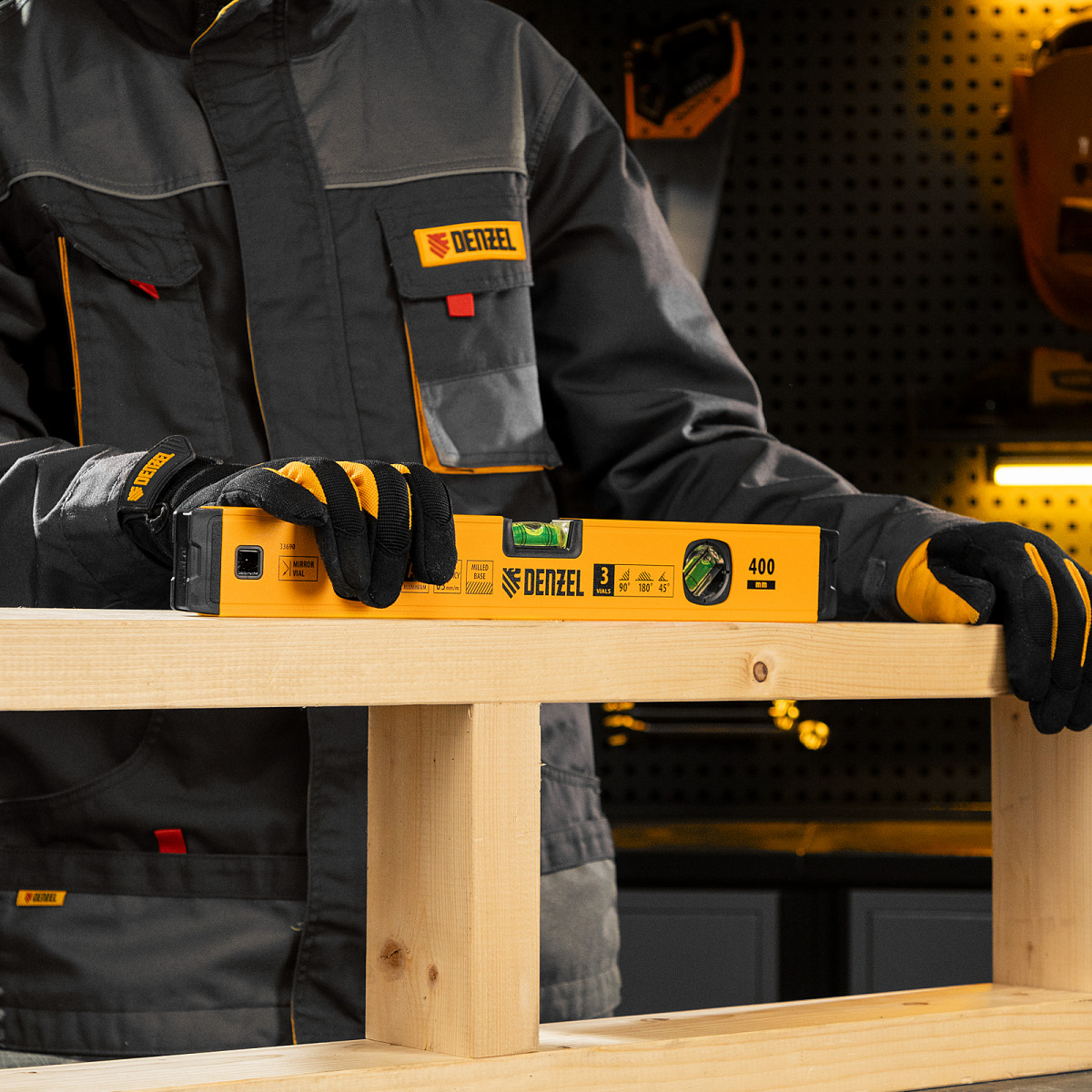 Алюминиевый фрезерованный уровень Denzel 33690 длиной 400 мм, с магнитом и 3 глазками, из которых 1 зеркальный, предназначен для контроля отклонений от горизонтальной, вертикальной и поверхности под углом 45° с точностью 0,5 мм/м. 3 пузырьковые камеры 90°, 180° и 45° позволяют быстро проверить правильность разметки. Инструмент незаменим при проведении строительных, ремонтных, сантехнических работ.