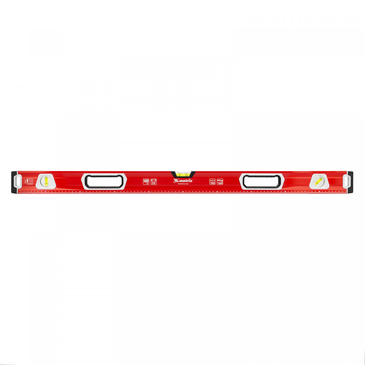 Уровень алюминиевый фрезерованный Matrix 34733 длиной 1000 мм, с магнитной полосой и 2-компонентными рукоятками, 3 глазками и 1 зеркальным отражателем, — измерительный инструмент для контроля отклонений поверхностей от горизонтали, вертикали и угла 45°. Используется для выполнения работ, требующих высокой точности.