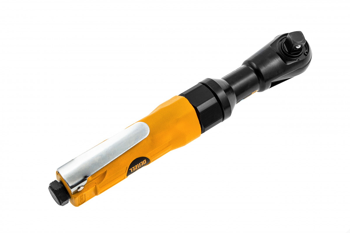 Усиленная пневмотрещотка Denzel RP100 57475, 160 об/мин, с квадратным хвостовиком 1/2 дюйма, — незаменимый помощник в автосервисе, слесарном цехе, на шиномонтаже, в частной мастерской и в любом деле, где нужен монтаж и демонтаж резьбового крепежа. Крутящий момент 100 Нм позволяет аккуратно работать с мелкими крепежными элементами без риска их повреждения и оперативно справляться со сложными, тугими соединениями. Применение трещотки в быту или промышленности позволяет сэкономить время и силы мастера.,Инструмент предназначен для работы при давлении 6,3 бар, расход воздуха в среднем не превышает 200 л/мин. Во время работы не забывайте использовать специальное масло ISO 46, которое можно добавлять как напрямую в инструмент, так и с помощью блока подготовки воздуха Denzel 57469, включающего в себя лубрикатор для автоматической подачи масла.
