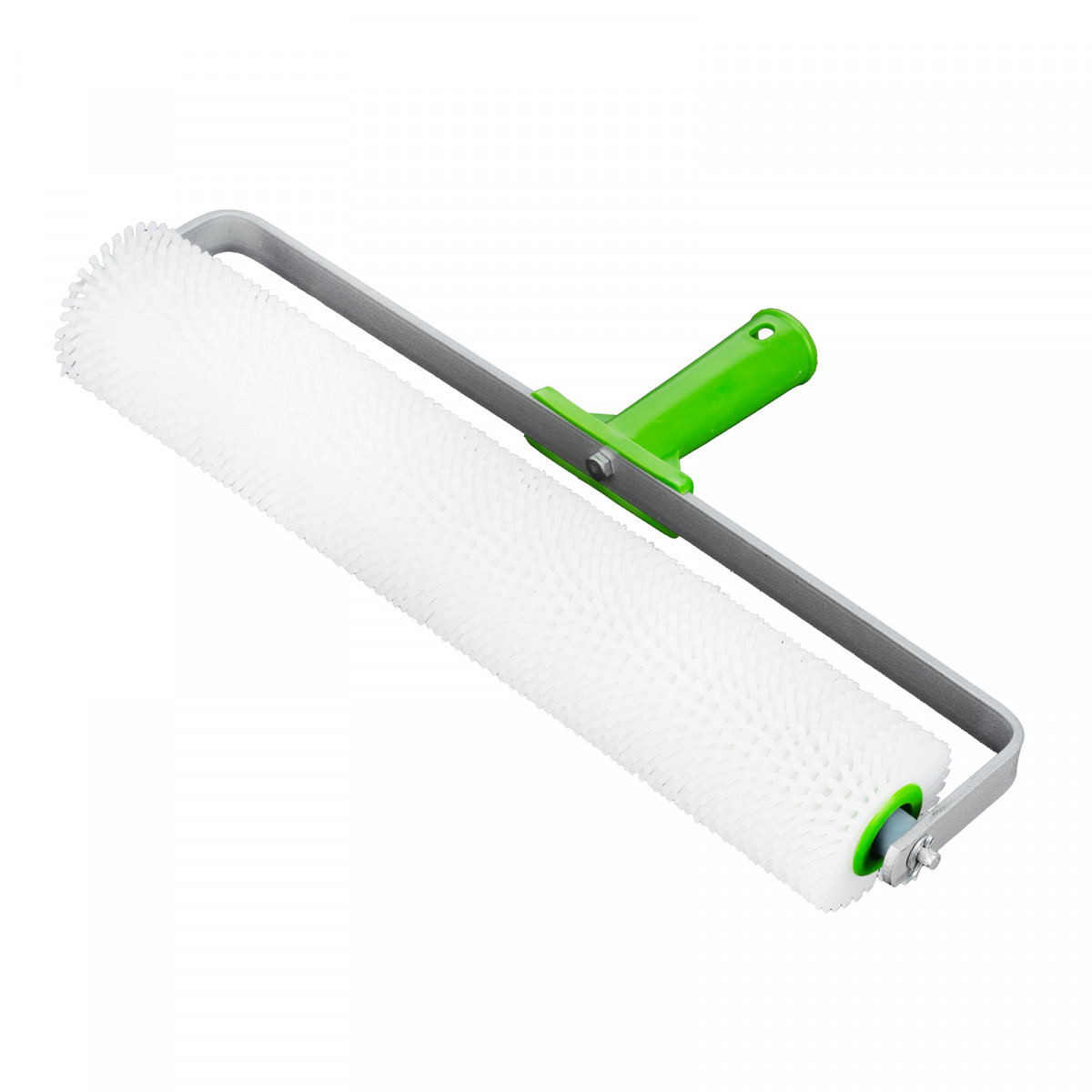 Игольчатый валик Сибртех 81103 длиной 400 мм используется для монтажа наливных полов. Позволяет удалять пузырьки воздуха из толщи еще жидкого покрытия путем его интенсивного прокатывания по распределенному на поверхности основы раствору. Валик длиной 400 мм можно использовать на поверхности большой площади. Длина иголок 13 мм оптимальна для покрытий небольшой толщины.