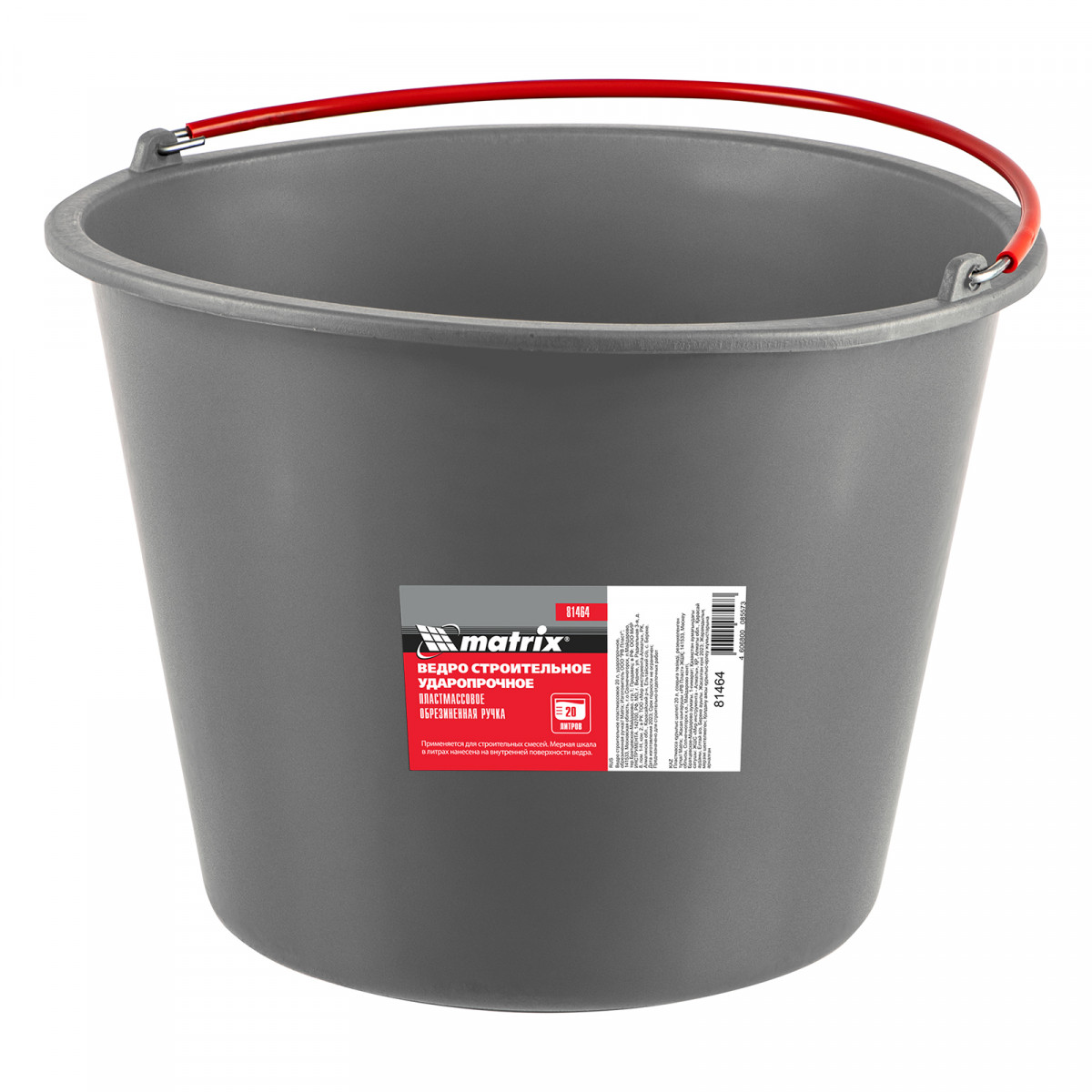 Ударопрочное пластмассовое ведро Matrix 81464 объемом 20 л, с обрезиненной рукояткой, используется во время проведения строительных и отделочных работ. В нем можно замешивать строительные растворы, хранить и перемещать жидкие и сыпучие материалы. На внутренней поверхности имеется шкала, позволяющая отмерять необходимое количество раствора.