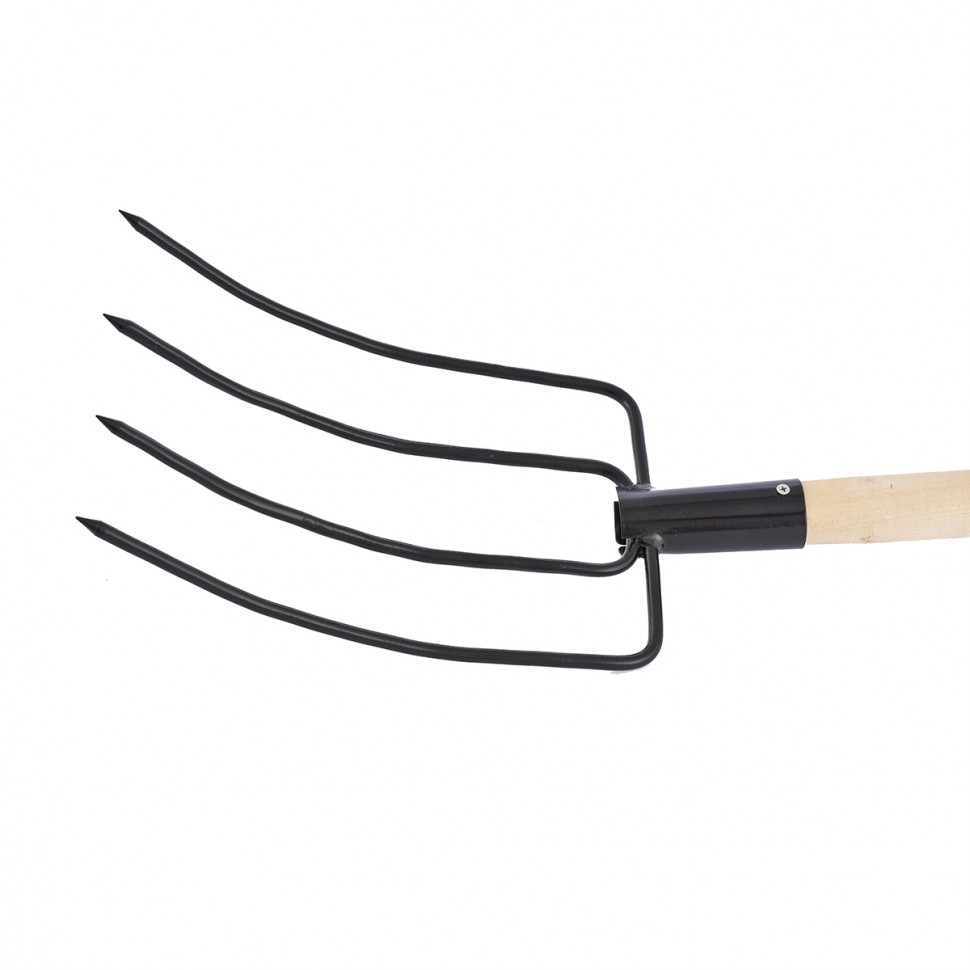 Вилы 4-х рогие с деревянным черенком предназначены для уборки территории сада или огорода. Рабочая часть вил изготовлена из среднеуглеродистой стали, покрыта порошковой эмалью для предохранения от коррозии, надежной и долговечной работы. Черенок из березы не скользит в руках.