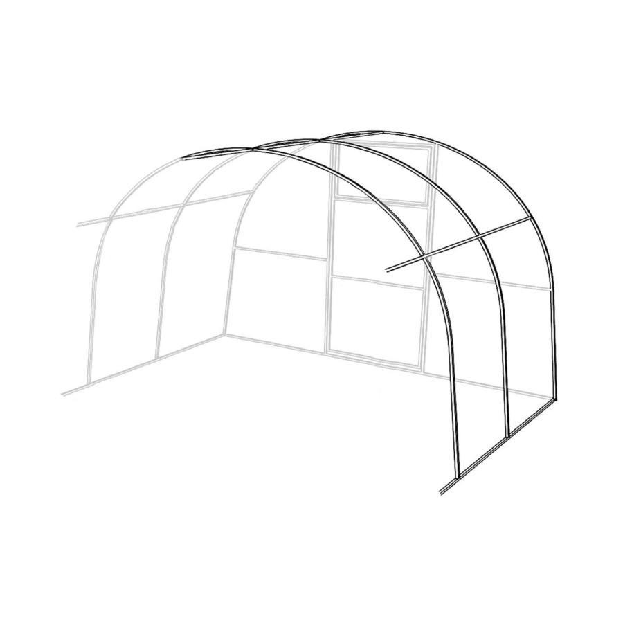 Теплица дачница Усиленная изготовлена из профильной цельносварной трубы с долговечным цинковым покрытием. Каркас дополнительной секции изготовлен из сварной оцинкованной профильной трубы, собирается методом труба в трубу и насквозь продевается болтами, отверстия для болтов уже просверлены. Расстояние между дугами 0,65 м.