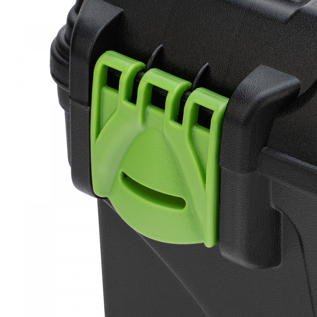 • Усиленная конструкция — замки и верхняя крышка установлены на 3-рядные петли, поэтому ящик выдерживает значительный вес.