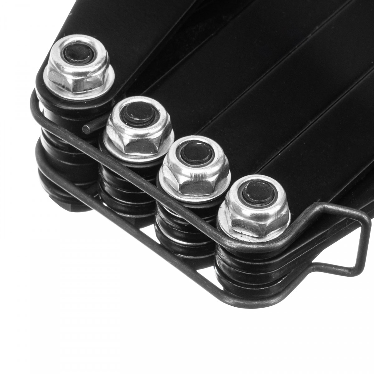 • Удобное хранение и транспортировка — прижимной механизм удерживается в сложенном состоянии при помощи металлической скобы.
