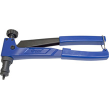 Заклёпочник для резьбовых заклёпок 250 мм. Алминиевой литой корпус, прорезиненные рукоятки. 4 съёмные насадки с диаметром резьбы М3/М4/М5/М6. Применяется для скрепления листовых материалов с помощью резьбовых заклёпок из алюминия, латуни и нержавеющей стали.