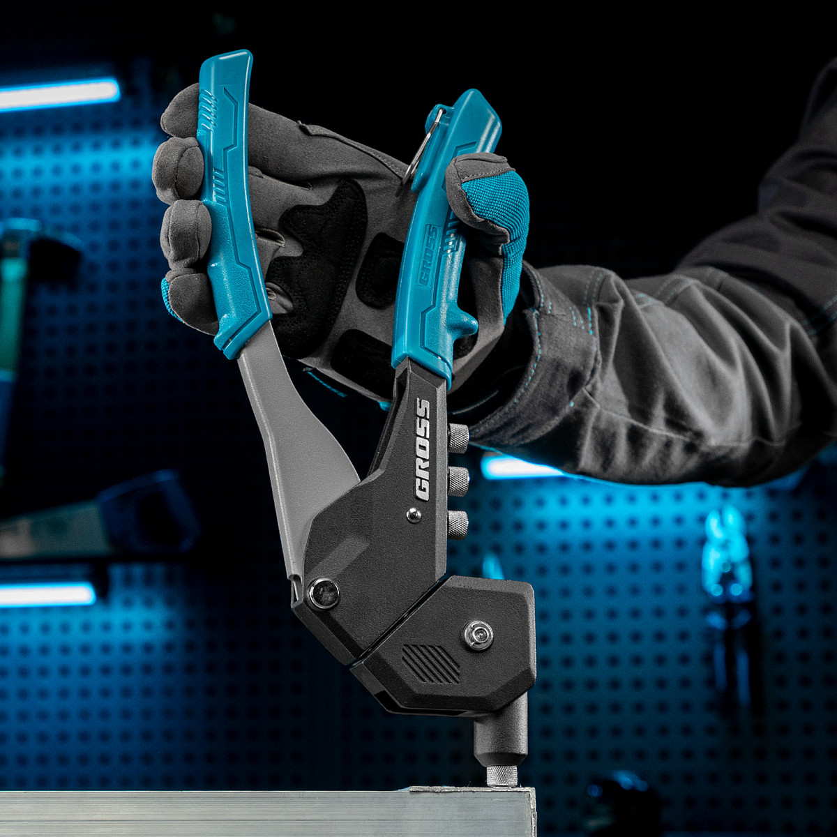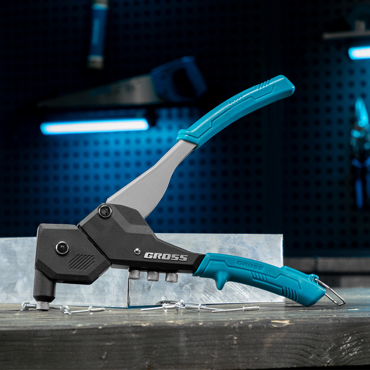 Заклепочник ручной, 290 мм, поворотный, 0-360, заклепки 2,4-3,2-4,0-4,8 мм Gross