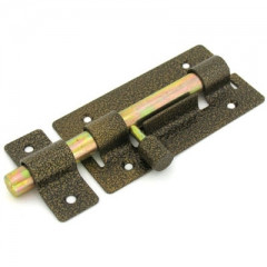 Засов накладной для деревянных и металлических дверей. Материал - сталь, полимерное покрытие. Габариты корпуса - 115х63 мм, 4 крепежных отверстия. Круглый ригель диаметром 13 мм с вылетом 30 мм. В комплекте ответная планка.