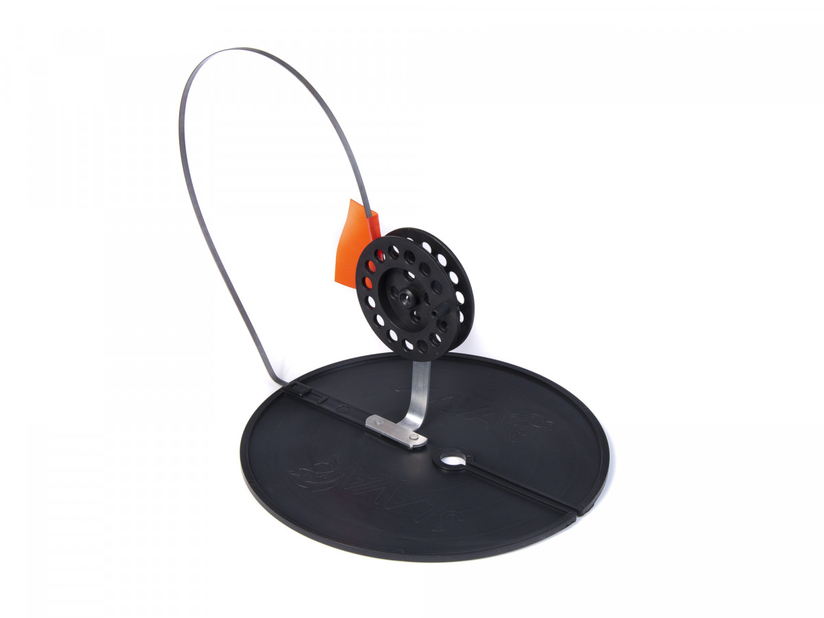 Жерлица на подставке состоит из пластикового основания, стойки с катушкой и флажка, сигнализирующего о поклевке.